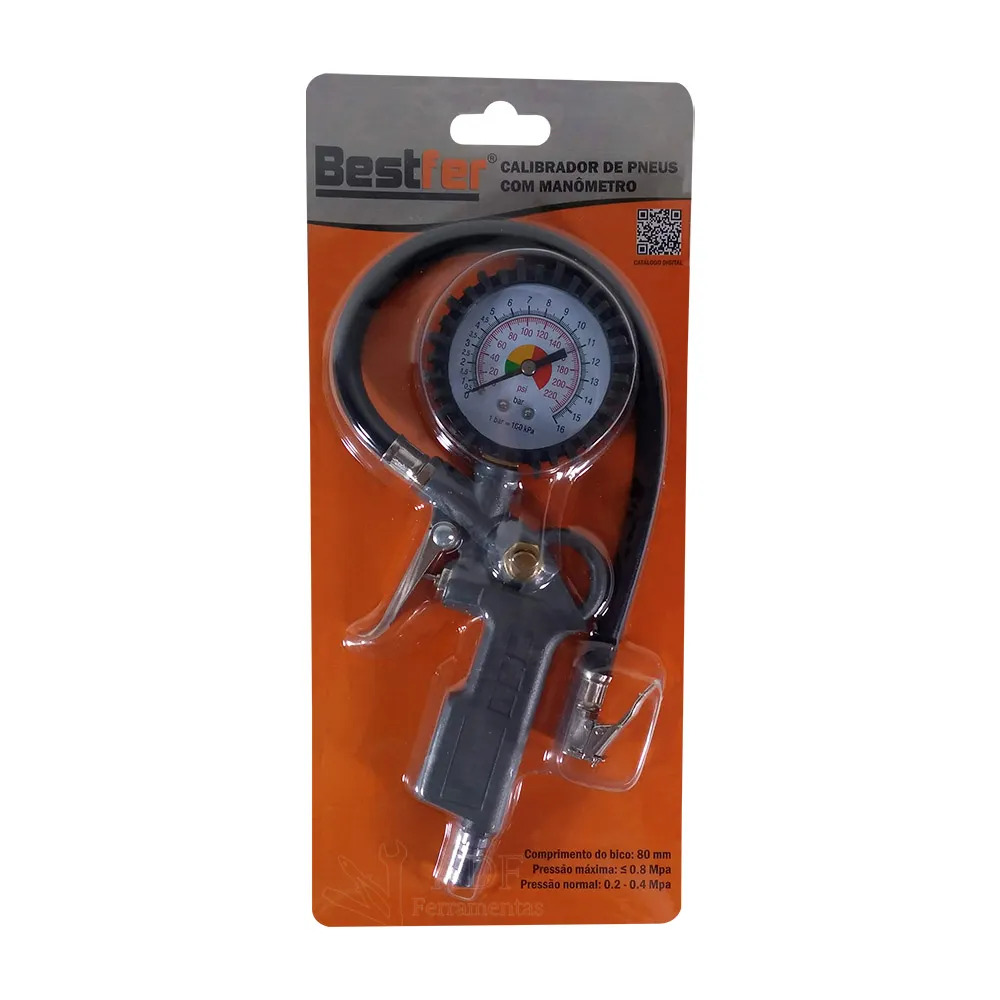 KIT CALIBRADOR MANUAL DE PNEUS C/MANOMETRO ANALOGICO BESTFER BFH1463