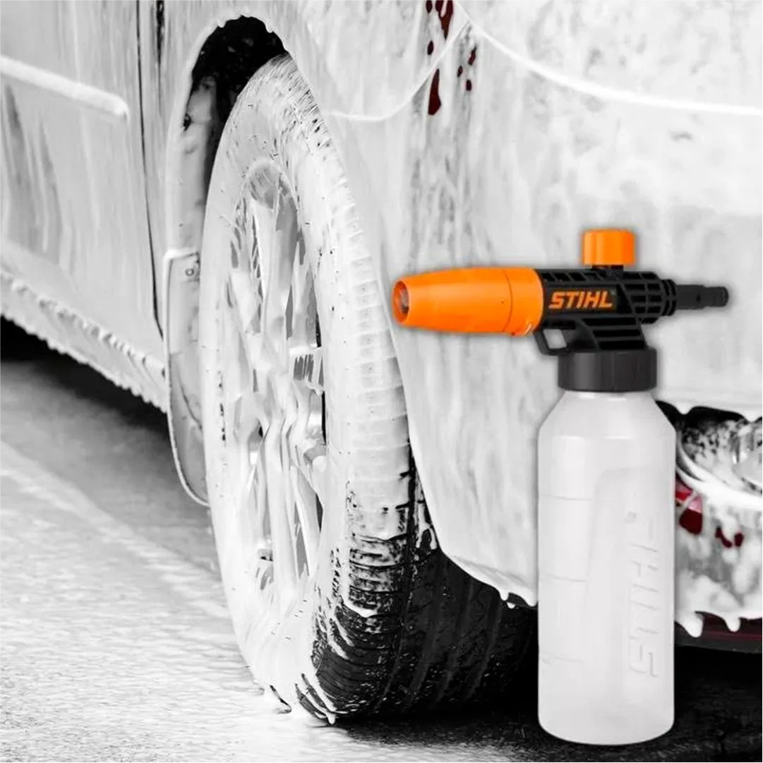 Descrição do Produto: Produz uma espuma densa que melhora a ação de limpeza. O jato pode ser regulado tanto para aplicação horizontal (ideal para limpeza de veículos ou paredes) ou vertical (ideal para limpar superfícies horizontais). Concentração de detergente ajustável por uma botoeira. Especificações Técnicas: Recipiente com capacidade de até 1 litro. O acessório pode ser utilizado nos modelos de lavadoras STIHL RE 90/110