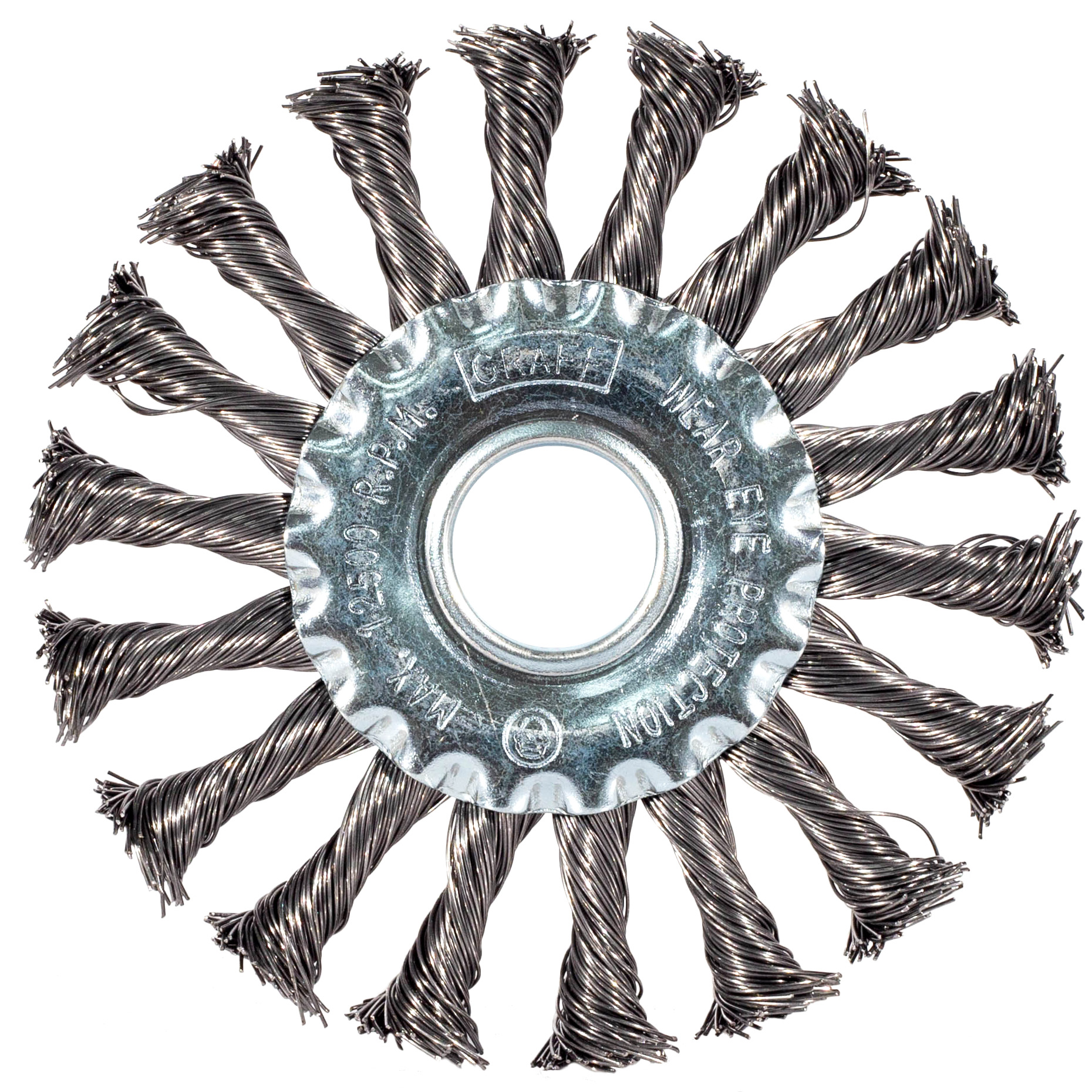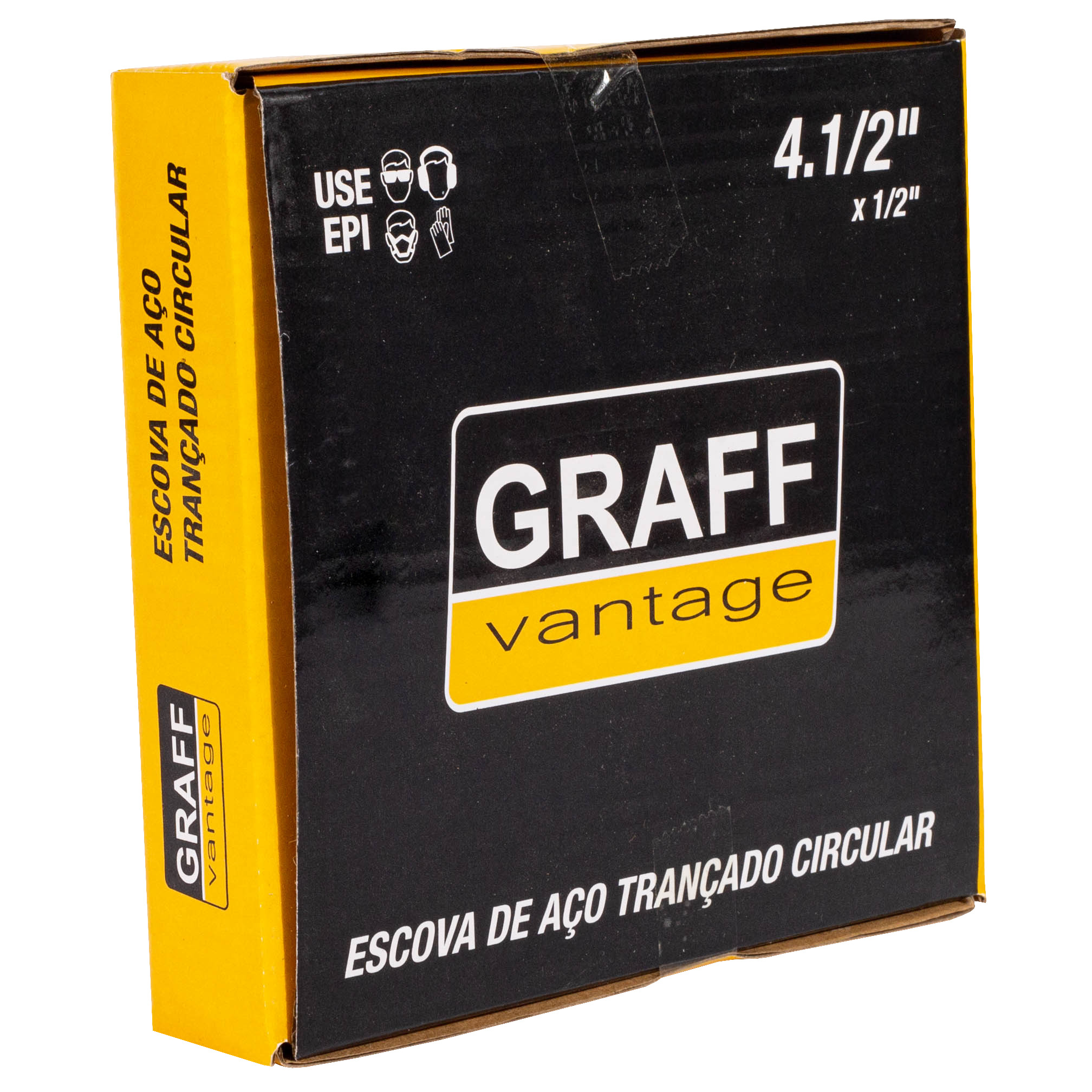 Escova de Aço Trançado Circular 4.1/2''x1/2'' (571,0017) – Graff Vantage, proporciona escovação mais agressiva. Utilizada em esmerilhadeira, sua principal característica é o uso em trabalhos mais pesados, já que a disposição trançada confere mais resistência aos arames de aço. Setores como o siderúrgico, metalúrgico, automobilístico, eletrônico estão entre os que mais utilizam a escova circular aço trançado.