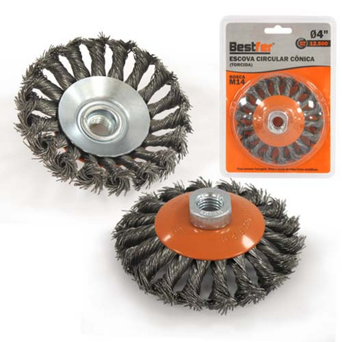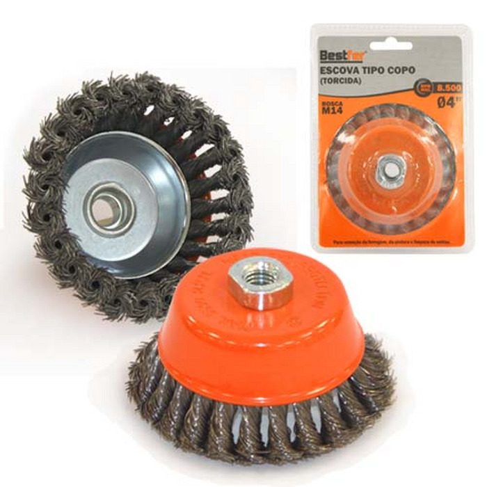 Escova de Aço Trançado tipo Copo c/ Rosca 60xM14mm (571,0020) – Graff Vintage, é utilizado para limpar duramente superfícies de metal de ferrugem e sujeira e também para limpar junteiras de soldagem.