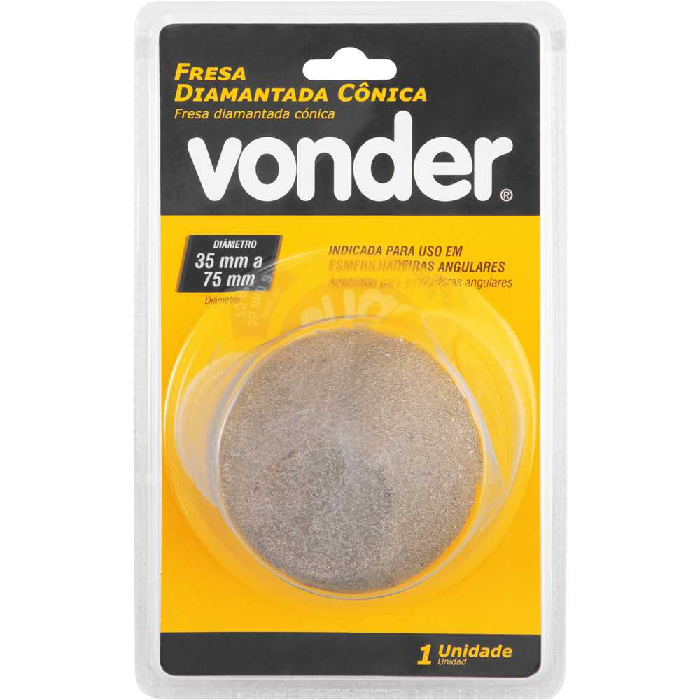 Seja o primeiro a avaliar “FRESA DIAMANTADA CONICA 35MM A 75MM VONDER 5314035075”
