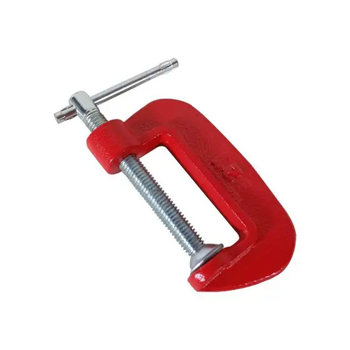 Grampo Sargento, tipo C, em aço carbono fundido nodular forjado, pintura eletrostática de alta resistência, qualidade “Heavy Duty”, Plus, super resistente, com base roscada extra forte. Ideal para fixar e colar madeiras, mármores, entre outros.