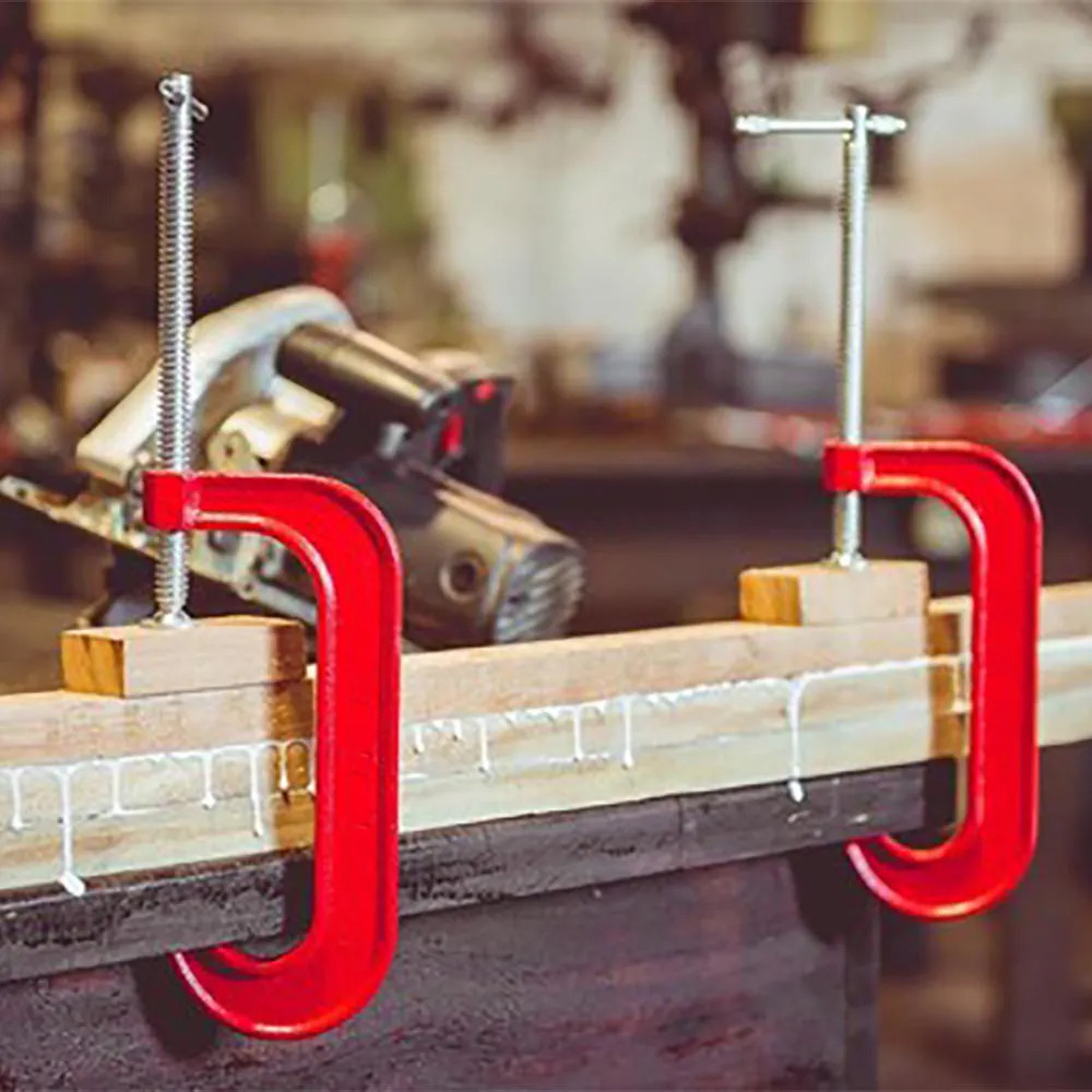 Grampo Sargento, tipo C, em aço carbono forjado e temperado, pintura eletrostática de alta resistência, Flex, super econômico, com base roscada. Ideal para fixar e colar madeiras, mármores, entre outros.