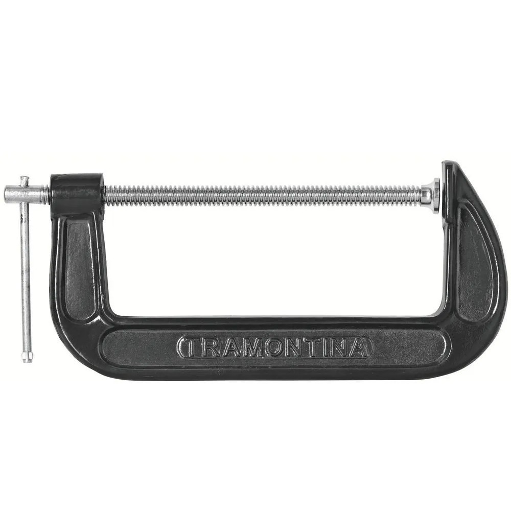 Grampo Sargento, tipo C, em aço carbono fundido nodular forjado, pintura eletrostática de alta resistência, qualidade “Heavy Duty”, Plus, super resistente, com base roscada extra forte. Ideal para fixar e colar madeiras, mármores, entre outros.