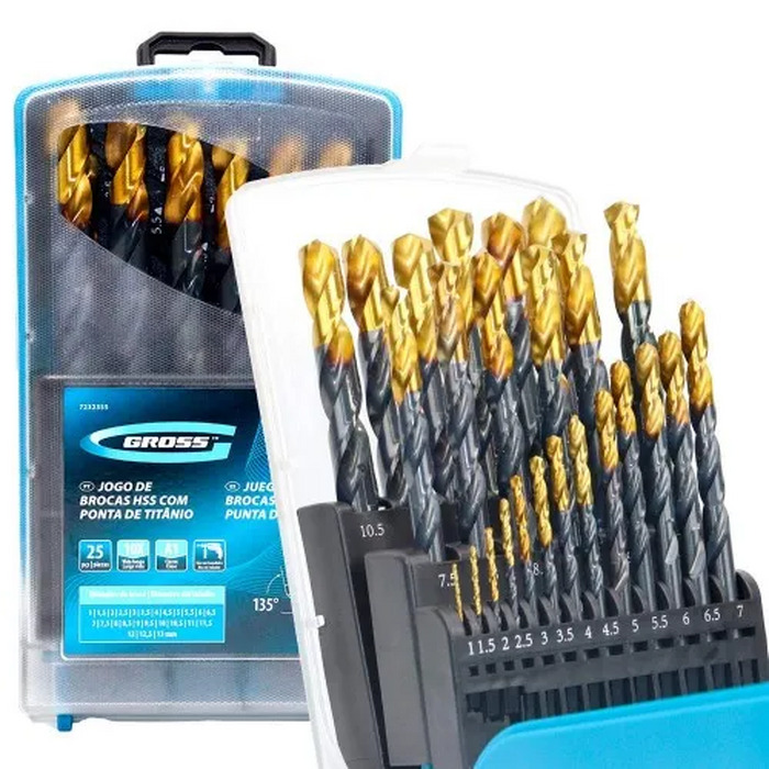 O Jogo de brocas de aço rápido 1 a 13 mm 25 peças 7232355 da Gross se destaca como um conjunto essencial para profissionais e entusiastas do DIY, oferecendo 25 brocas de metal de alta qualidade, capazes de perfurar furos de 1 a 13 mm em peças de aço.