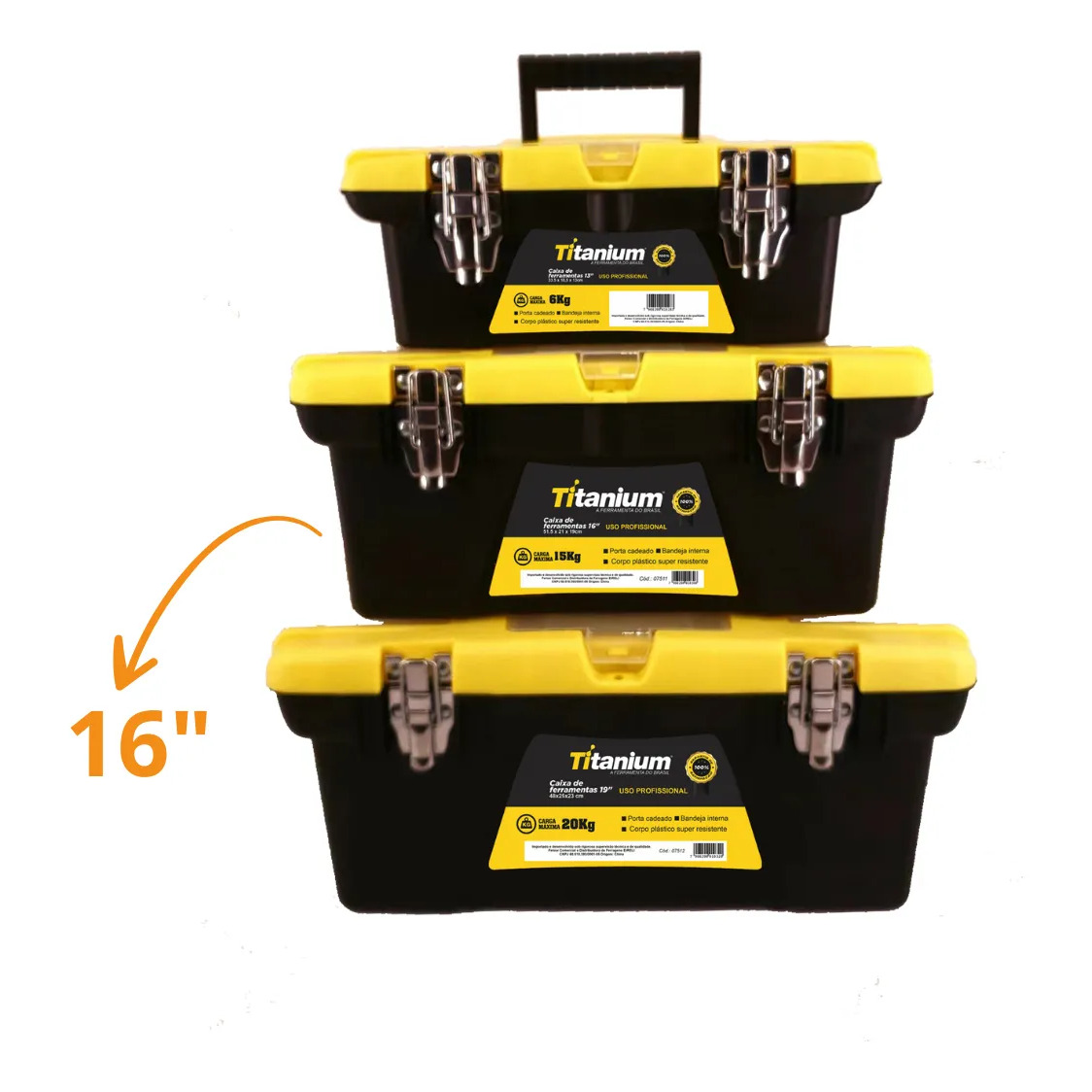 Kit Caixa De Ferramentas Organizadora 19, 16, 13 Polegadas De Plástico ABS Titanium
