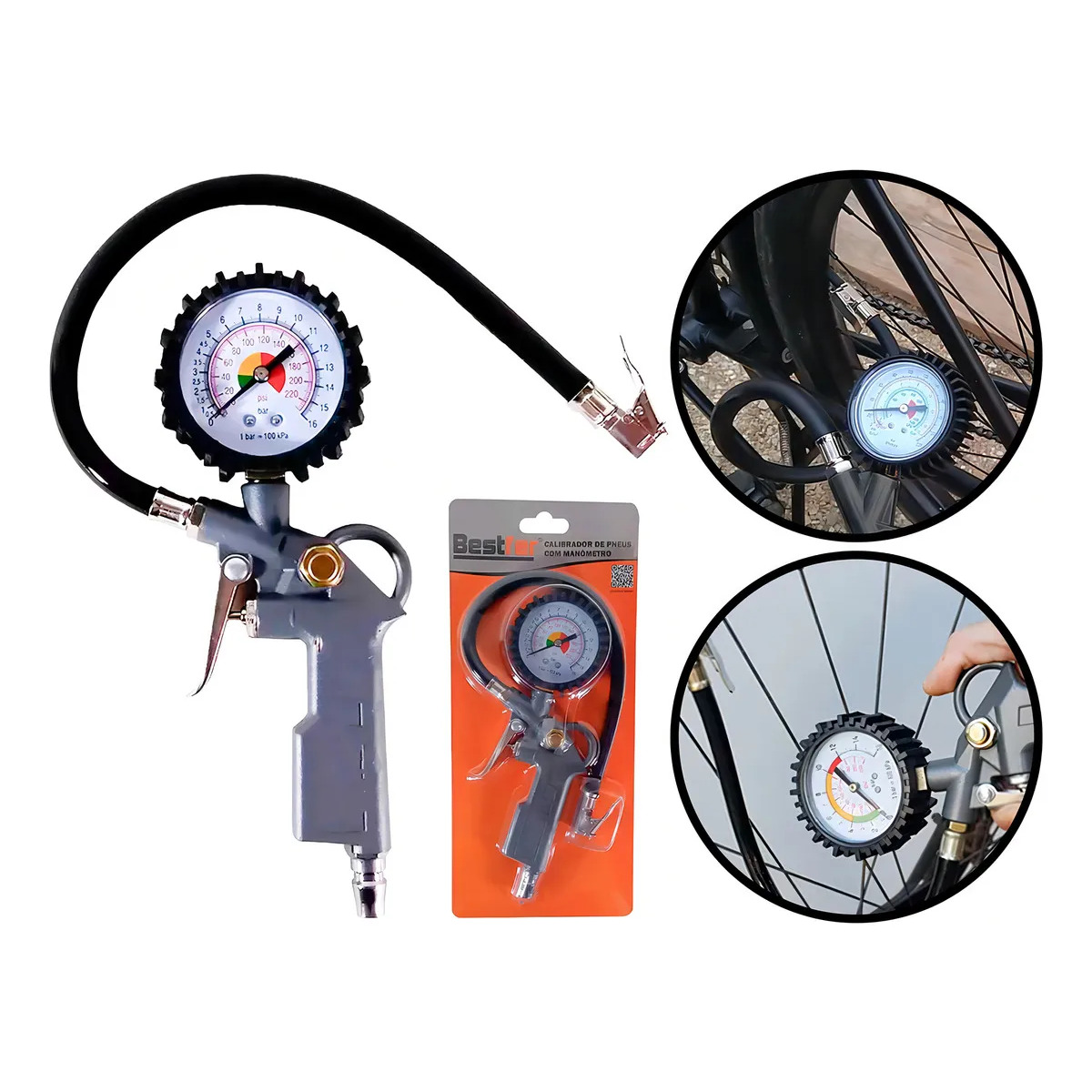 Kit Calibrador Manual De Pneus Com Manômetro Analógico Bestfer