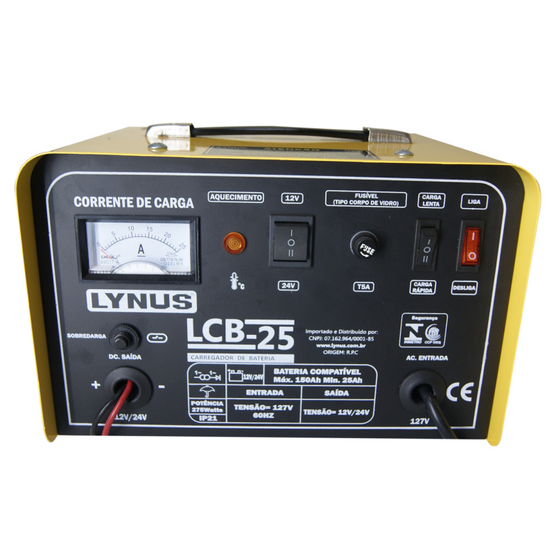 LCB-25 CARREGADOR DE BATERIA PORTATIL 220V LYNUS