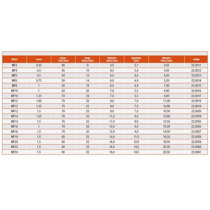 – Rosca Métrica Fina – MF