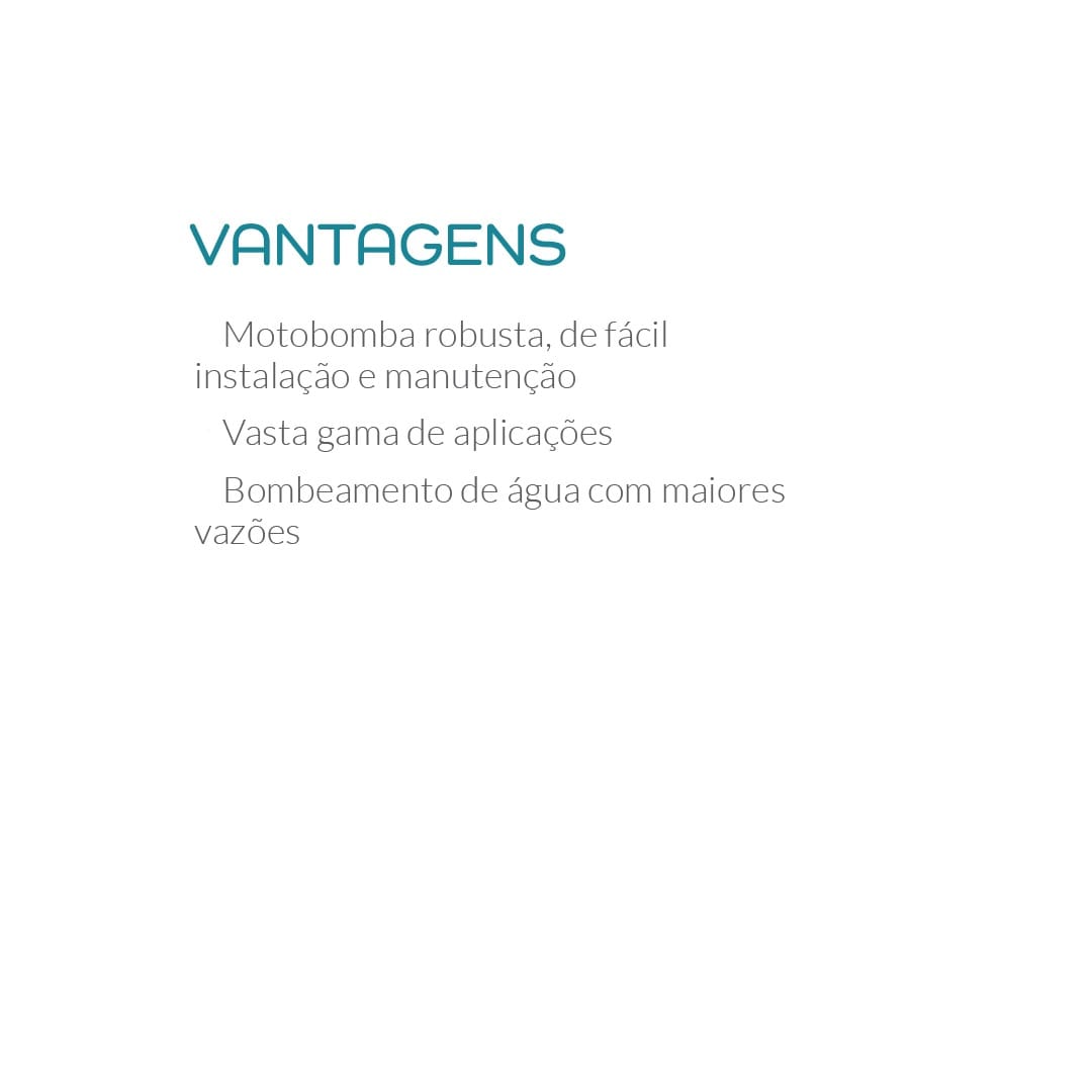 sistemas de pressurização de baixa pressão e irrigação de pequeno porte. Sua