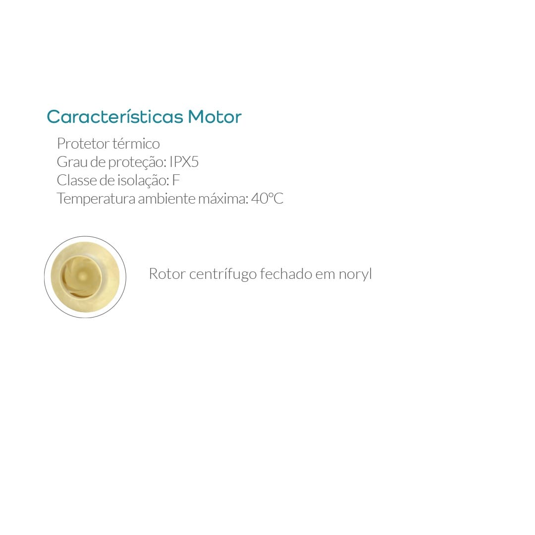 Utilizada em sistemas de filtragem em piscinas de pequeno e médio porte. O equipamento possui um pré-filtro na sucção para realizar a filtragem de partículas
