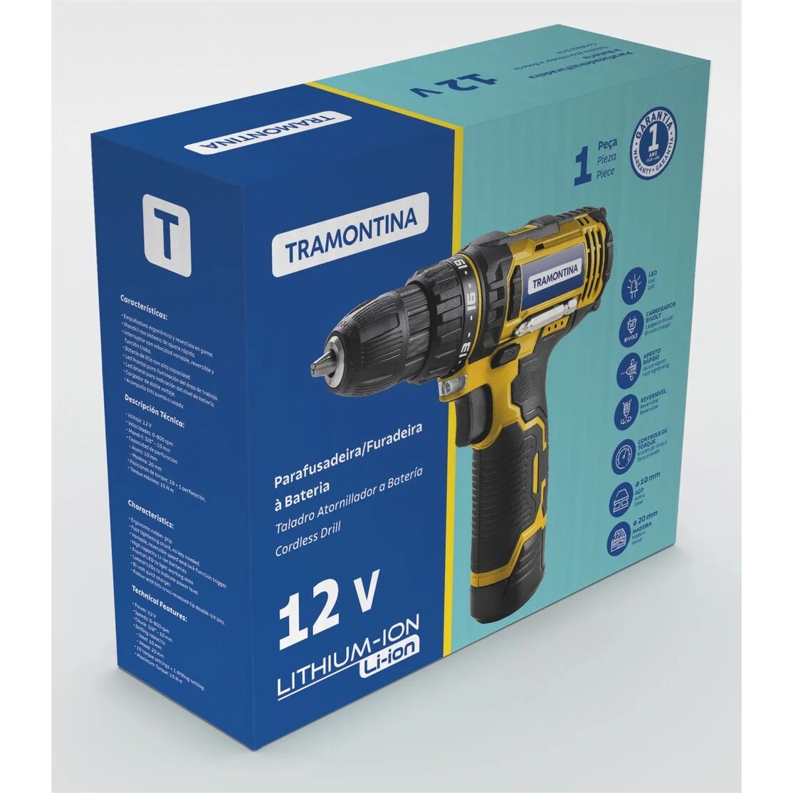 A Parafusadeira Furadeira Tramontina para Uso Doméstico 12 V vai deixar as tarefas diárias ainda mais fáceis. Com design moderno e robusto, ela leva alta tecnologia e conforto para as exigências domésticas. Pensando na praticidade, ela possui empunhadura ergonômica e emborrachada, tornando o uso mais confortável. Possui uma bateria moderna com íons de Lítio, que dispõe de tecnologia especial sem efeito memória, podendo ser recarregada a qualquer momento sem danificar as células; além disso, a bateria tem alta capacidade 1300 mAh/ 1,3 Ah, proporcionando alto desempenho e produtividade, além de possuir carga estável com baixa perda de capacidade e rendimento durante a utilização. Acompanha carregador bi-volt e mandril com sistema de aperto rápido, que dispensa a utilização de chaves. É uma ferramenta completa que proporciona uma experiência superior e diferenciada para o usuário!