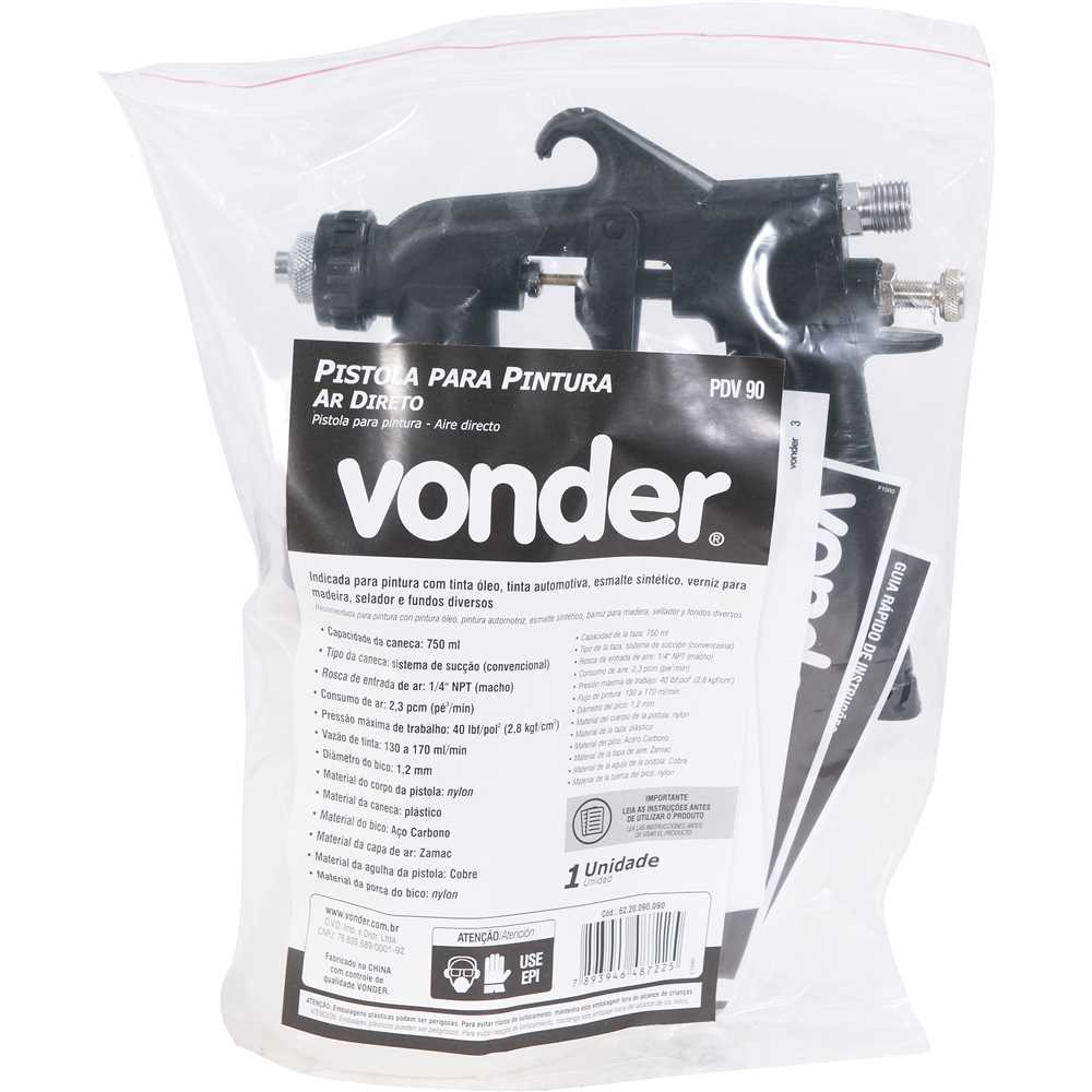 Indicada, principalmente, para: Ambientes prediais para pinturas com tinta óleo, verniz para madeira, esmalte sintético e selador. Ramo serralheiro: aplicação de zarcão, esmalte sintético, tinta automotiva, fundos diversos, tinta óleo e tinta martelada. Pode ainda ser utilizada, com restrições, no ramo moveleiro para aplicação de seladores, vernizes, pesticidas e fundos. A pistola PDV 90 funciona com o sistema de ar direto, sendo indicado para o seu funcionamento apenas compressores de ar direto.