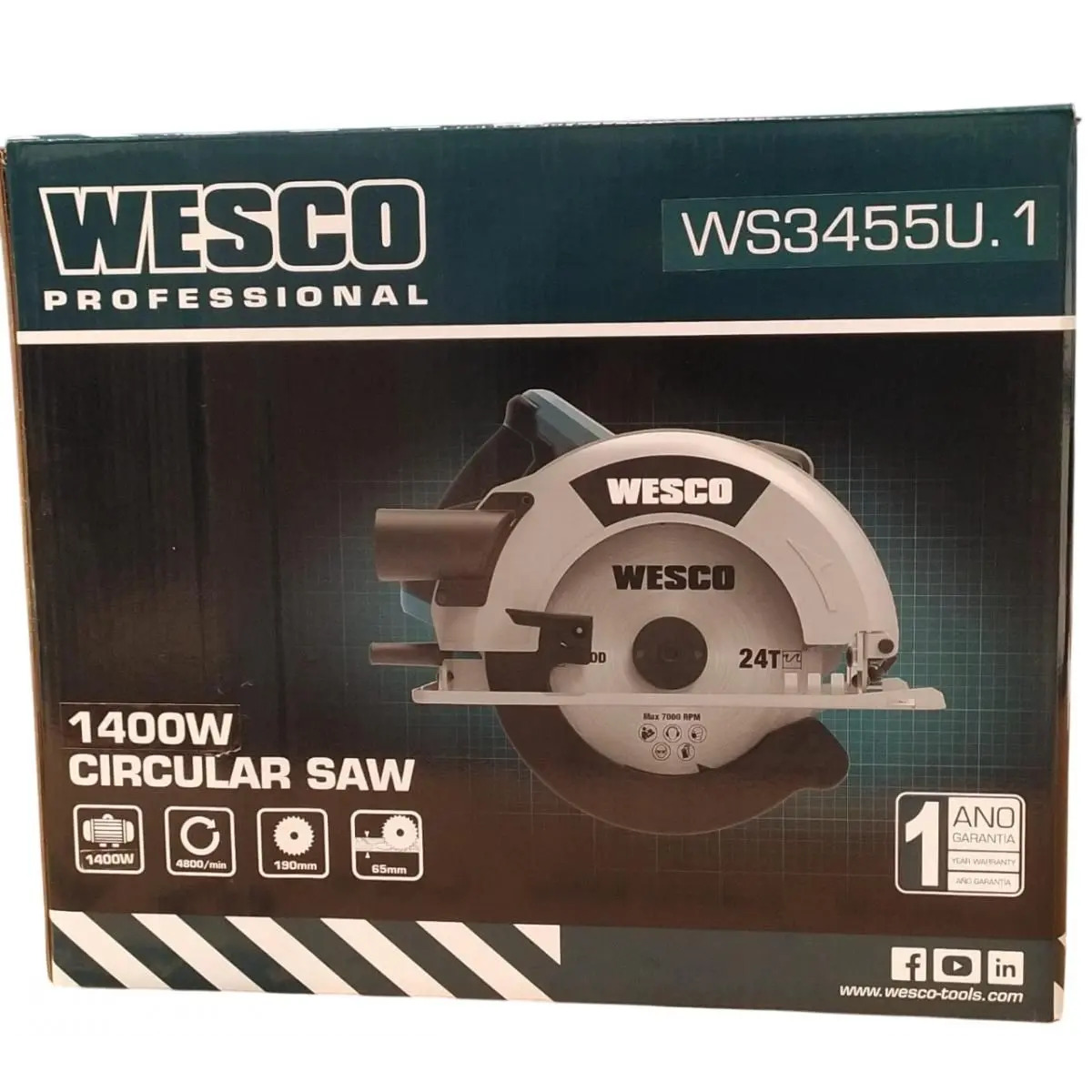 SERRA CIRCULAR 190MM 1400W 110V / 127V WESCO WS3455U.1