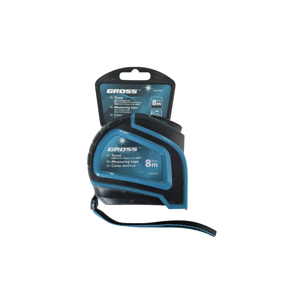 O corpo da trena é feita em plástico ABS com estojo de borracha.